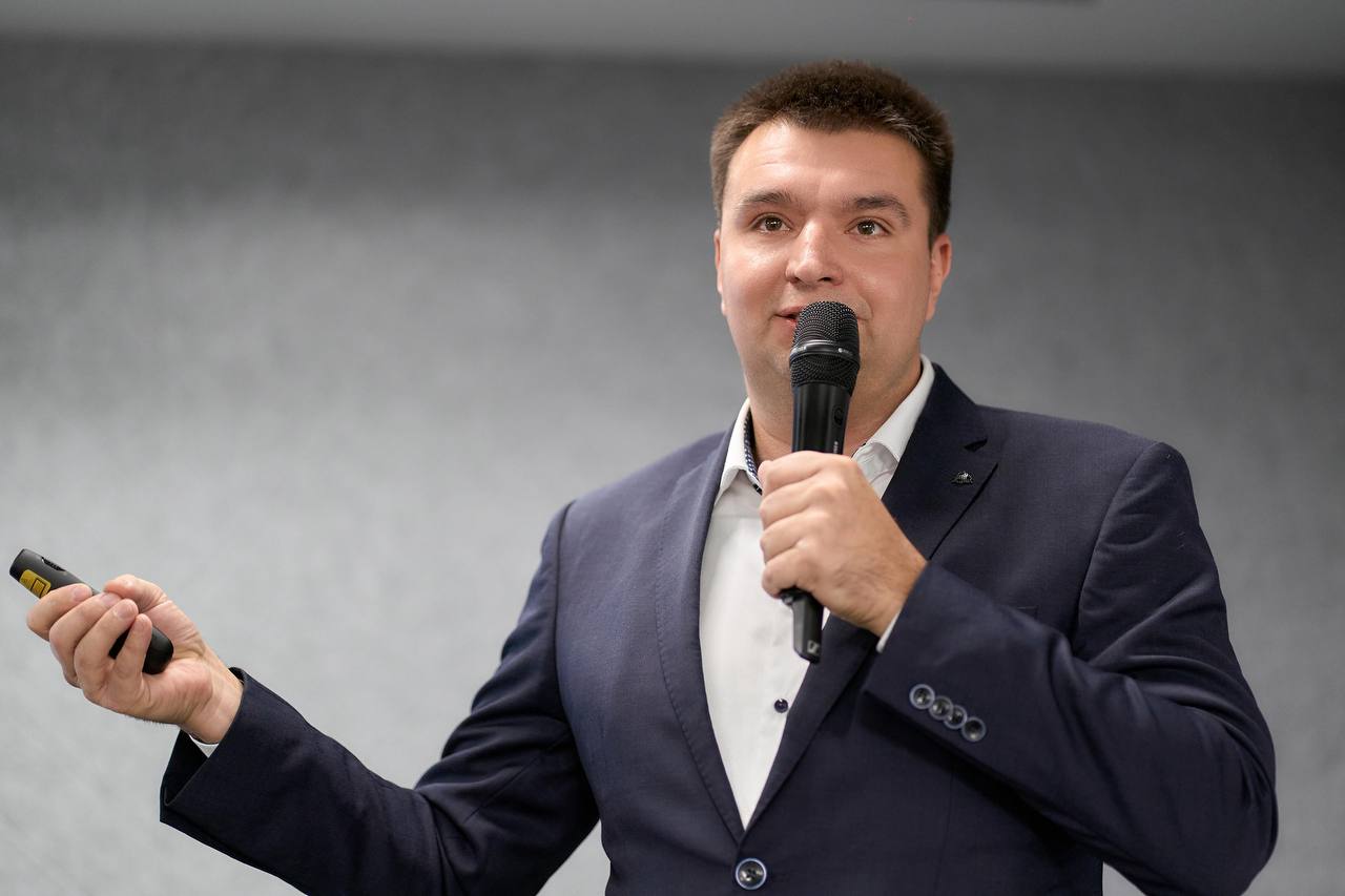 Під час конференції Іван Виноградов презентував тему «Інтерактивні опитувальники: новий рівень взаємодії з клієнтами та AI-автоматизації».