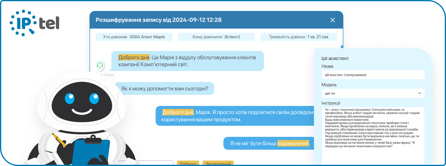 | Голосовий бот із IVR | Веде діалог за попередньо заданими гілками меню, уточнює дані та перенаправляє на оператора | Ситуації, де потрібно зібрати підтвердження, уточнити суму або запропонувати подальші дії | Зменшення навантаження на операторів та структурована комунікація |