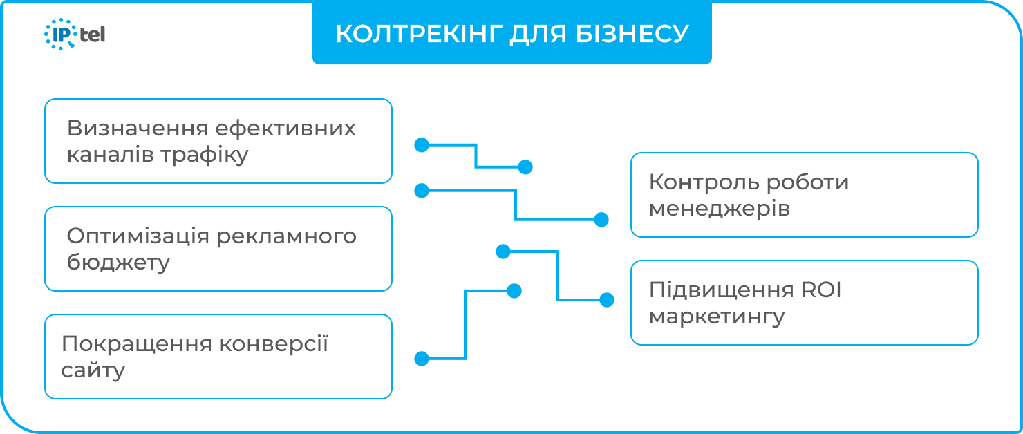 Колтрекінг зі своїми номерами затребуваний як у малому, так і в середньому та великому бізнесі, оскільки дозволяє точно вимірювати ефективність реклами та керувати воронкою звернень. Незалежно від масштабу компанії, система допомагає приймати обґрунтовані маркетингові рішення на основі реальних даних про дзвінки.