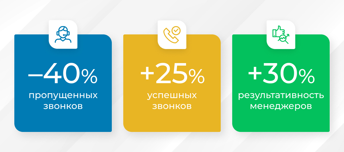 Результаты внедрения IPTel можно легко измерить. Они отразились не только в удобстве работы команды, но и в конкретных показателях эффективности: