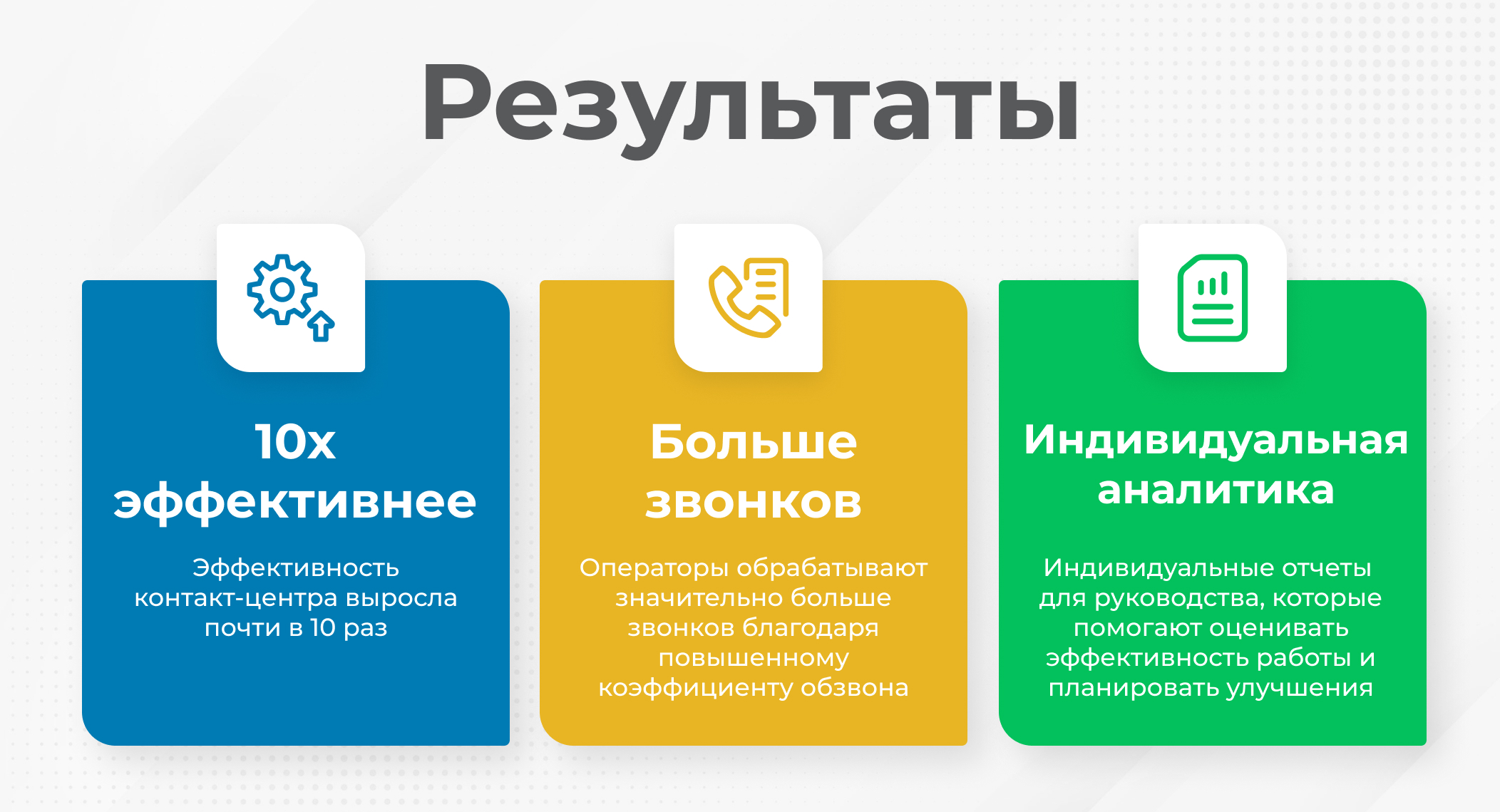 Операторы тратили много времени на набор номеров и ожидание ответа, а руководству не хватало данных, чтобы оценить эффективность отдела. Все это приводило к перегрузке команды, ведь менеджеры постоянно переключались между разными инструментами, не имея единого рабочего пространства.
