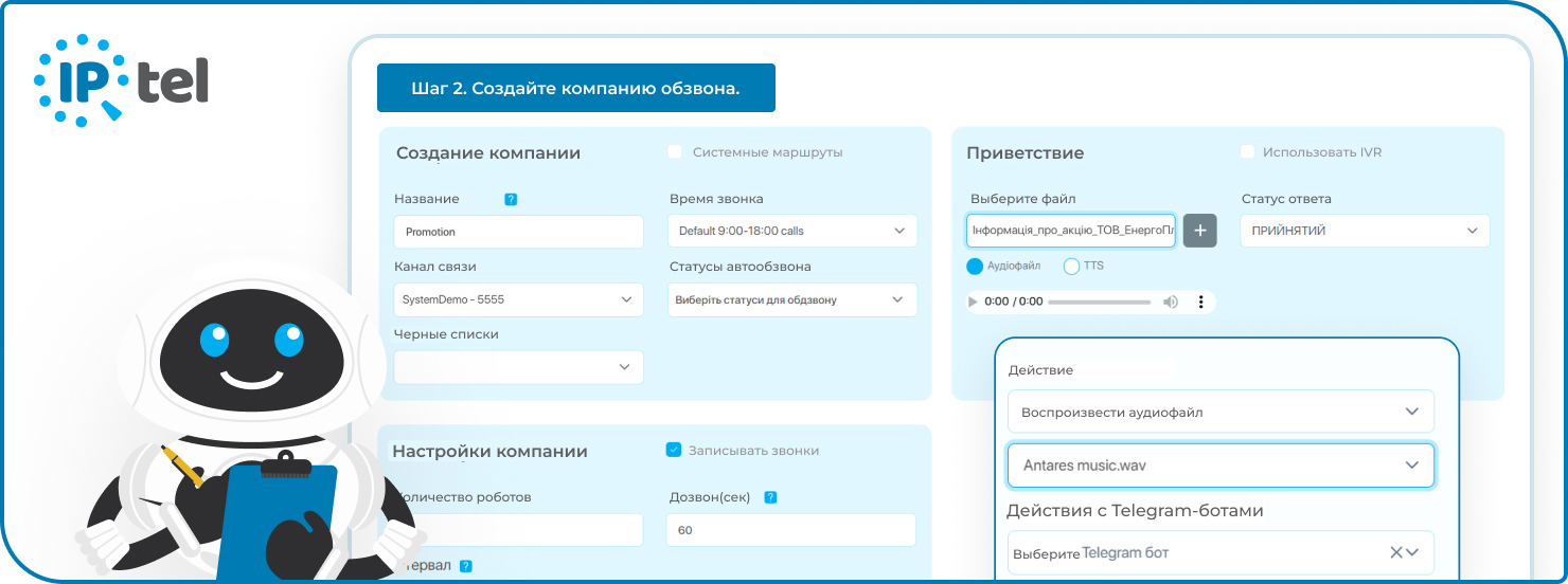 Запуск обзвона старых клиентов за одну неделю возможен, если использовать готовые инструменты IPTel, а не строить процесс с нуля. Достаточно загрузить базу, выбрать сценарий возврата, подготовить предложение и подключить автообзвон с CRM-воронкой. После этого система автоматически начнет контактировать с клиентами, фиксировать их реакции и передавать «теплые» лиды менеджерам.