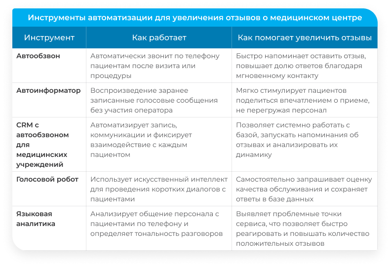 Эффективный маркетинг для медицинских центров невозможен без современных инструментов автоматизации, помогающих наладить коммуникацию с пациентами, стимулировать оставление отзывов и укреплять репутацию клиники.
